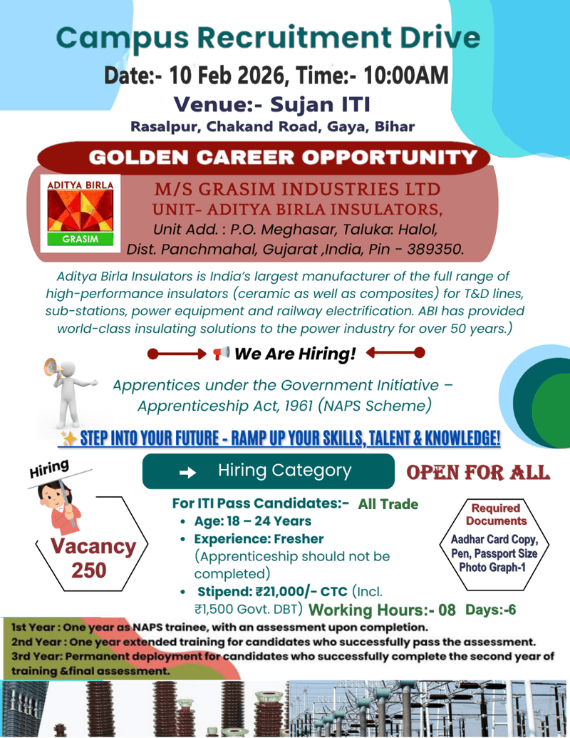 - Venue: Sujan ITI Rasalpur, Chakand Road, Gaya, Biha